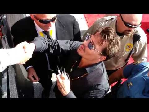 Johnny atendendo fãs durante o tapete vermelho da exibição especial de “O Cavaleiro Solitário”, em